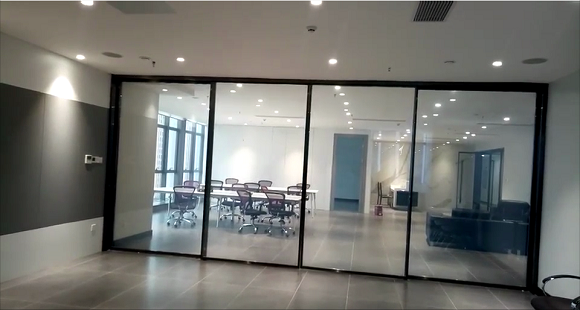 调光玻璃自动门是设备采用自动门正常机组,玻璃则采用调光玻璃。调光玻璃也叫智能玻璃、雾化玻璃、电控玻璃,是一种利用通电来调节光线视线的玻璃,是由调光膜和钢化玻璃通过技术压胶合成。拥有“通电透明、断电雾化”的功能特性,当电控产品关闭电源时,调光玻璃里面的液晶分子会呈现不规则的散布状态,使光线无法射入,让玻璃呈现不透明的外观。正是调光玻璃的这种独特性,调光玻璃广泛的运用于办公室、酒店、银行、医院、政府、会所、别墅等场所,用于室内区域分隔,能有效改善空间布局,自由调整视野空间大小。